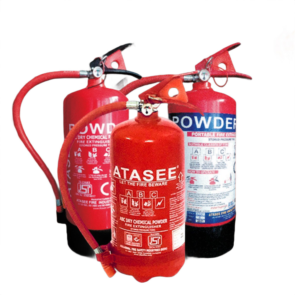 Portable and trolley-mounted extinguishers suitable for Class A, B, C, and electrical fires. Available in ABC Dry Powder, CO₂, Foam, and Water-based types.