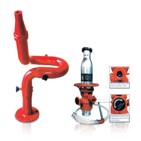 High-capacity monitors for long-range water or foam discharge during large fires.